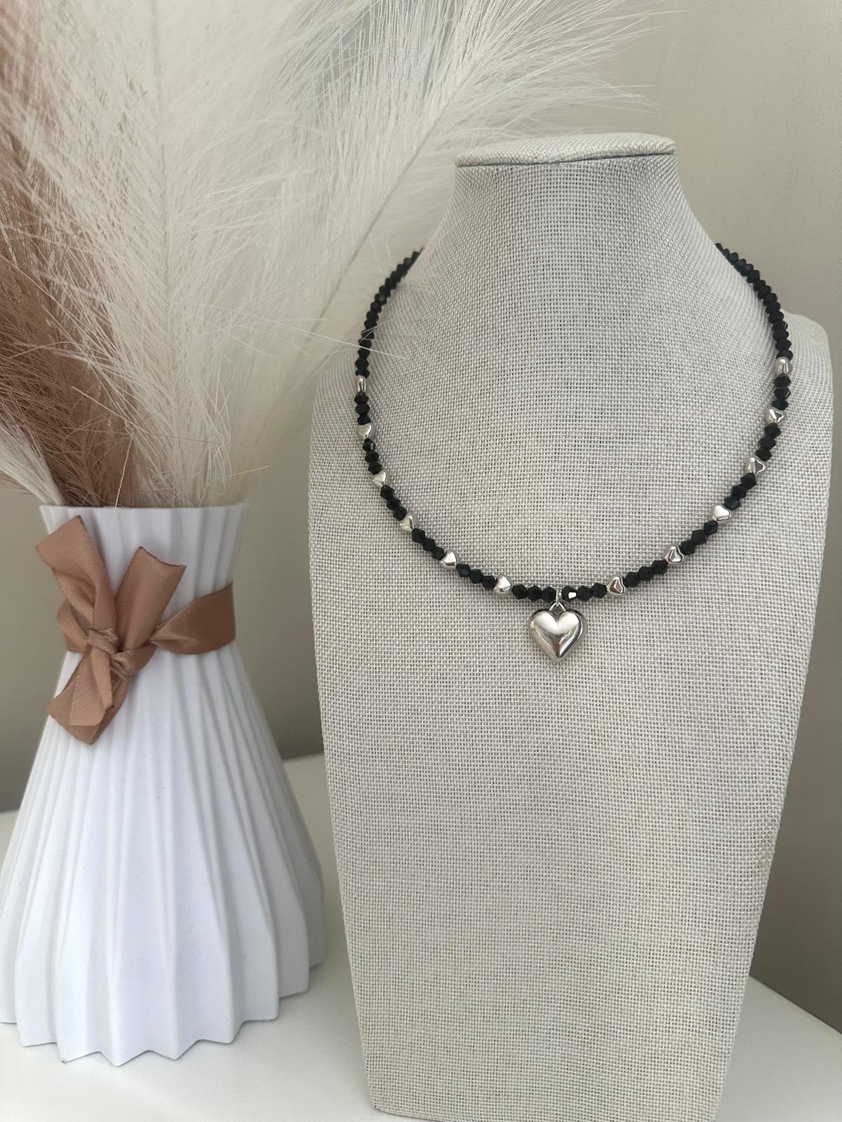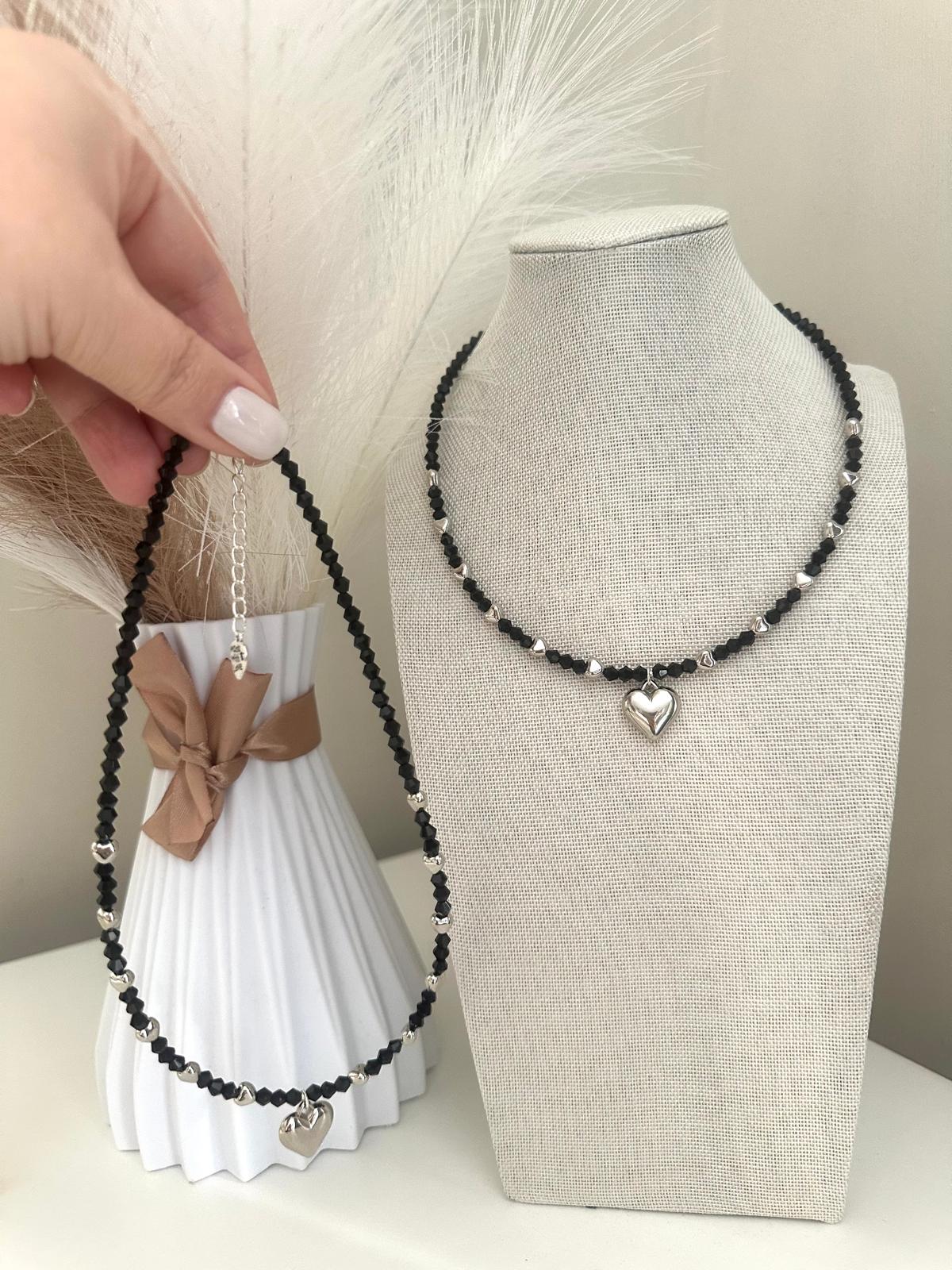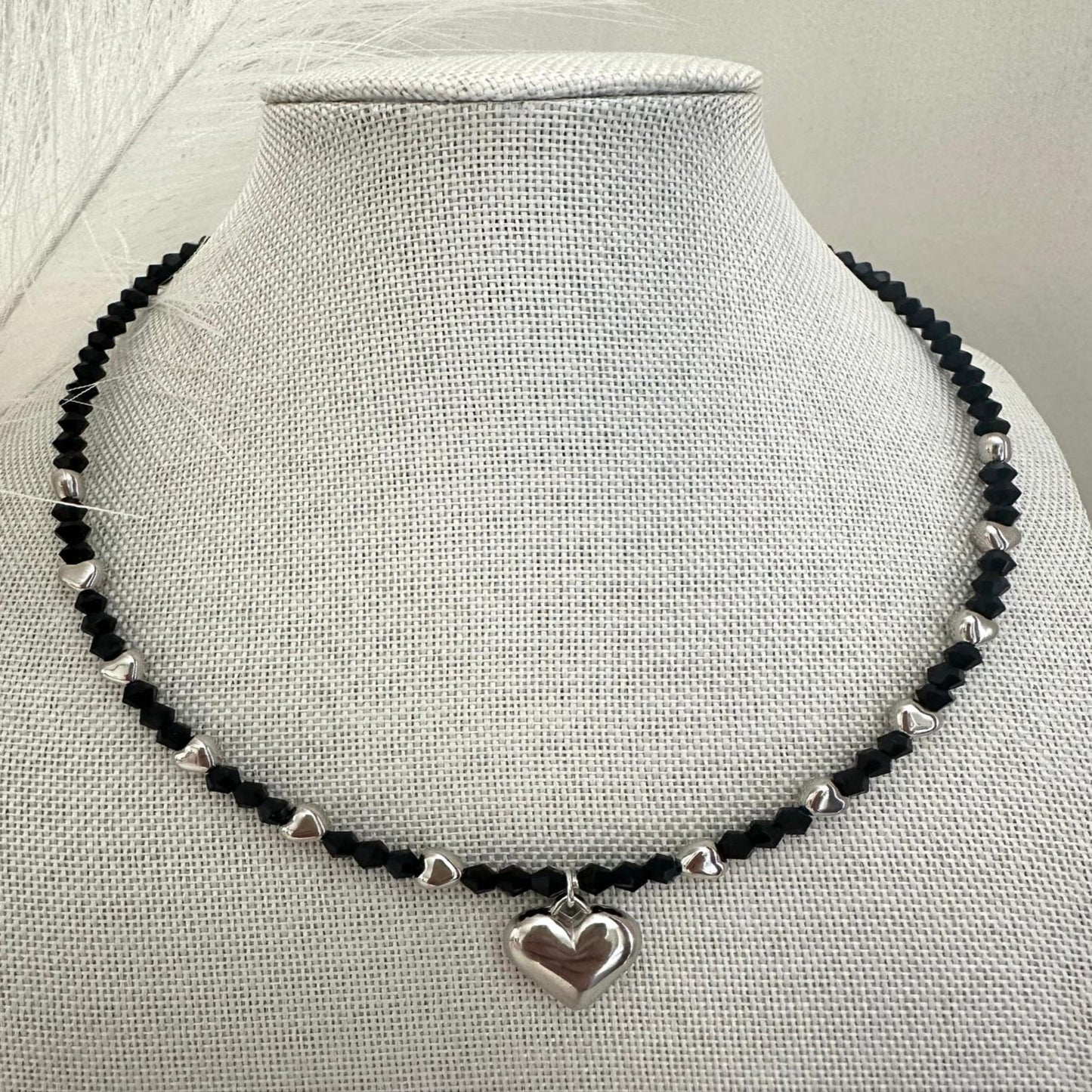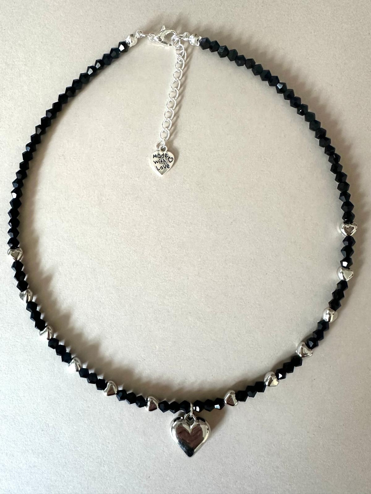 * Lovingly made with high-quality black crystal glass beads (4 mm), silver heart-shaped beads (5 mm), and featuring a silver heart design (15 mm x 15 mm).