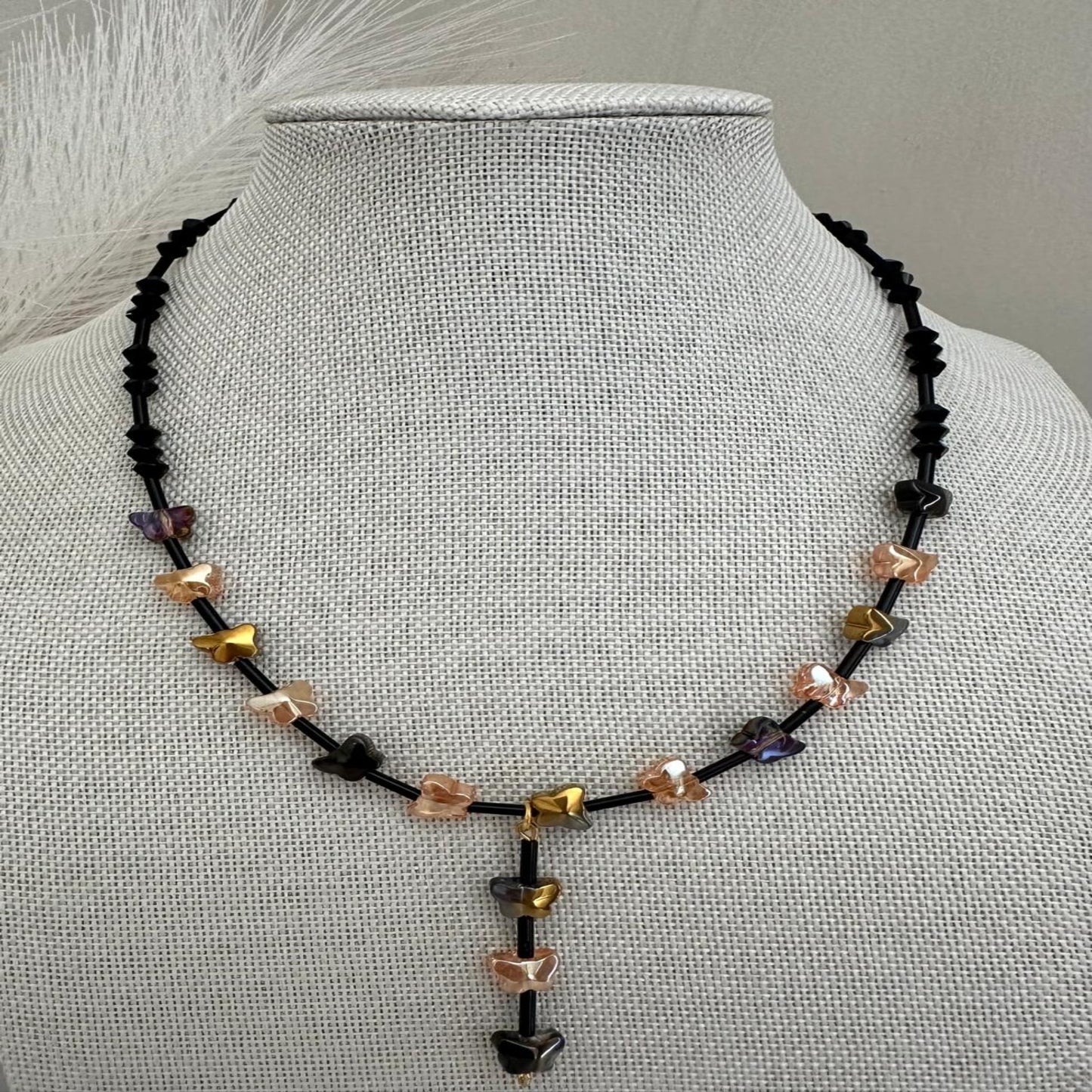 Thank you for considering the NIGHT BUTTERFLIES Necklace as part of your jewelry collection. I am dedicated to providing you with a piece of jewelry that will make you feel truly special. By purchasing this necklace, you are not just acquiring a beautiful accessory; you are also supporting a passionate small business owner dedicated to creating stunning, handcrafted jewelry.