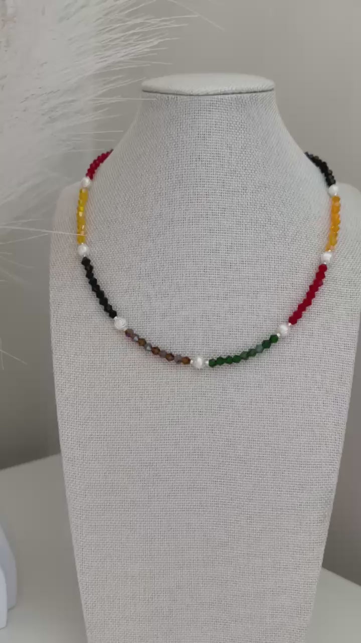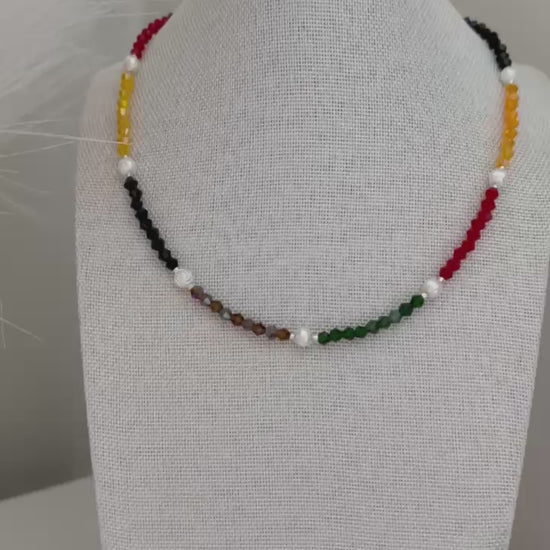 * Lovingly made with high-quality green, red, orange, red wine, and brown crystal glass beads (4 mm), Miyuki silver beads (2 mm), and high-quality white faux pearls (6 mm).