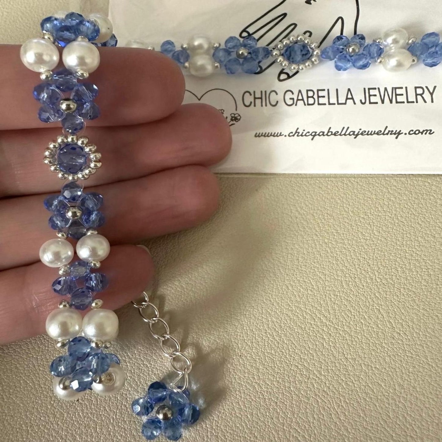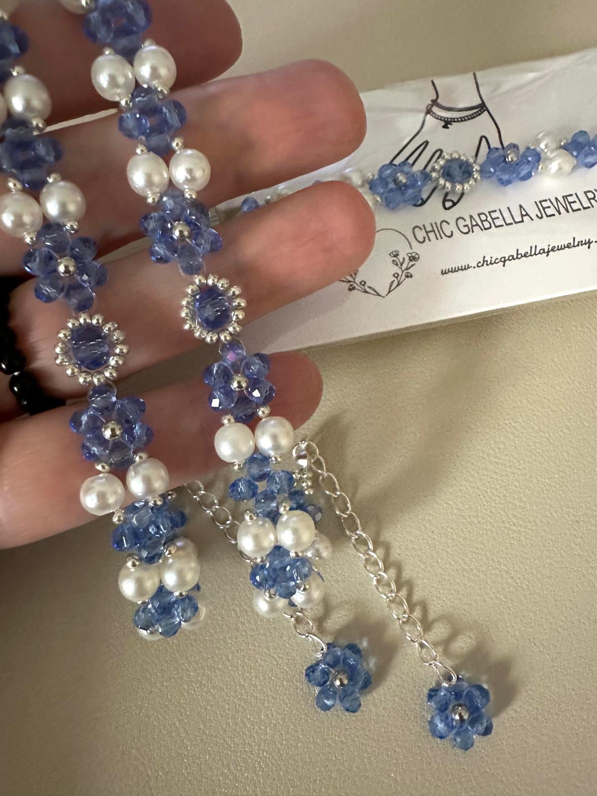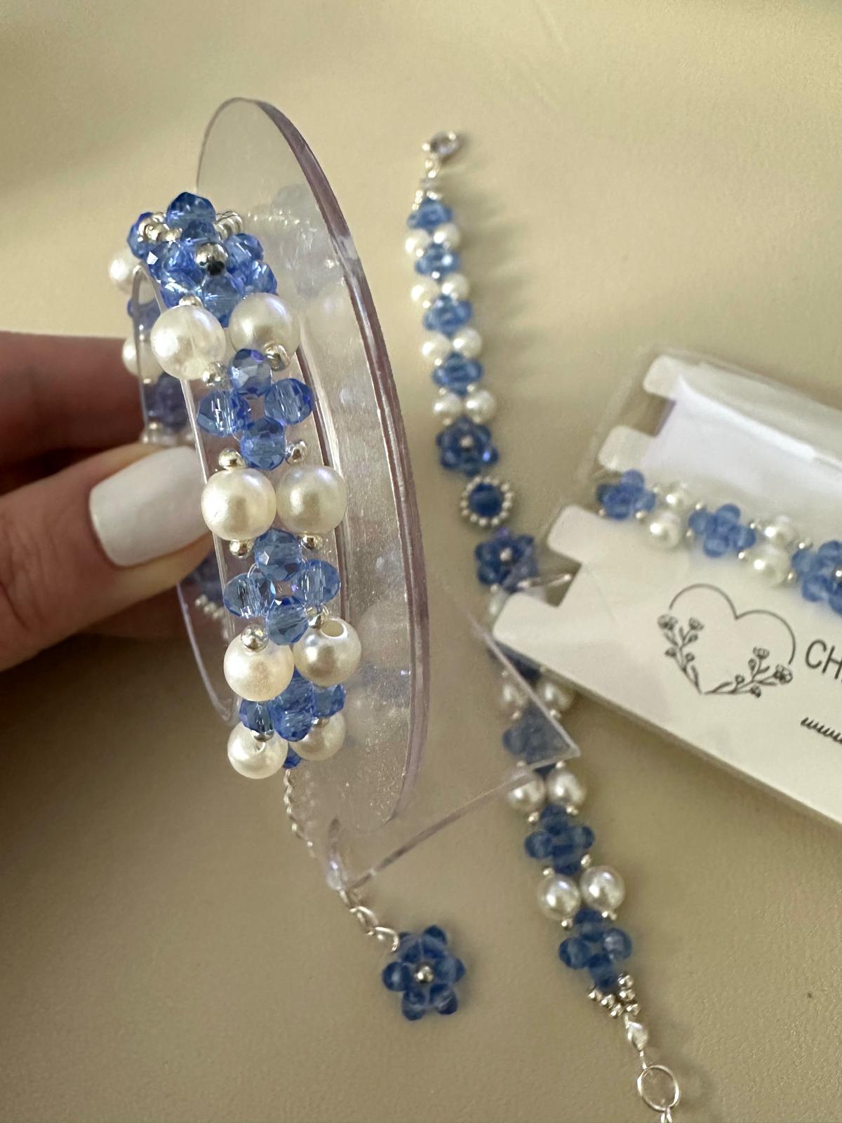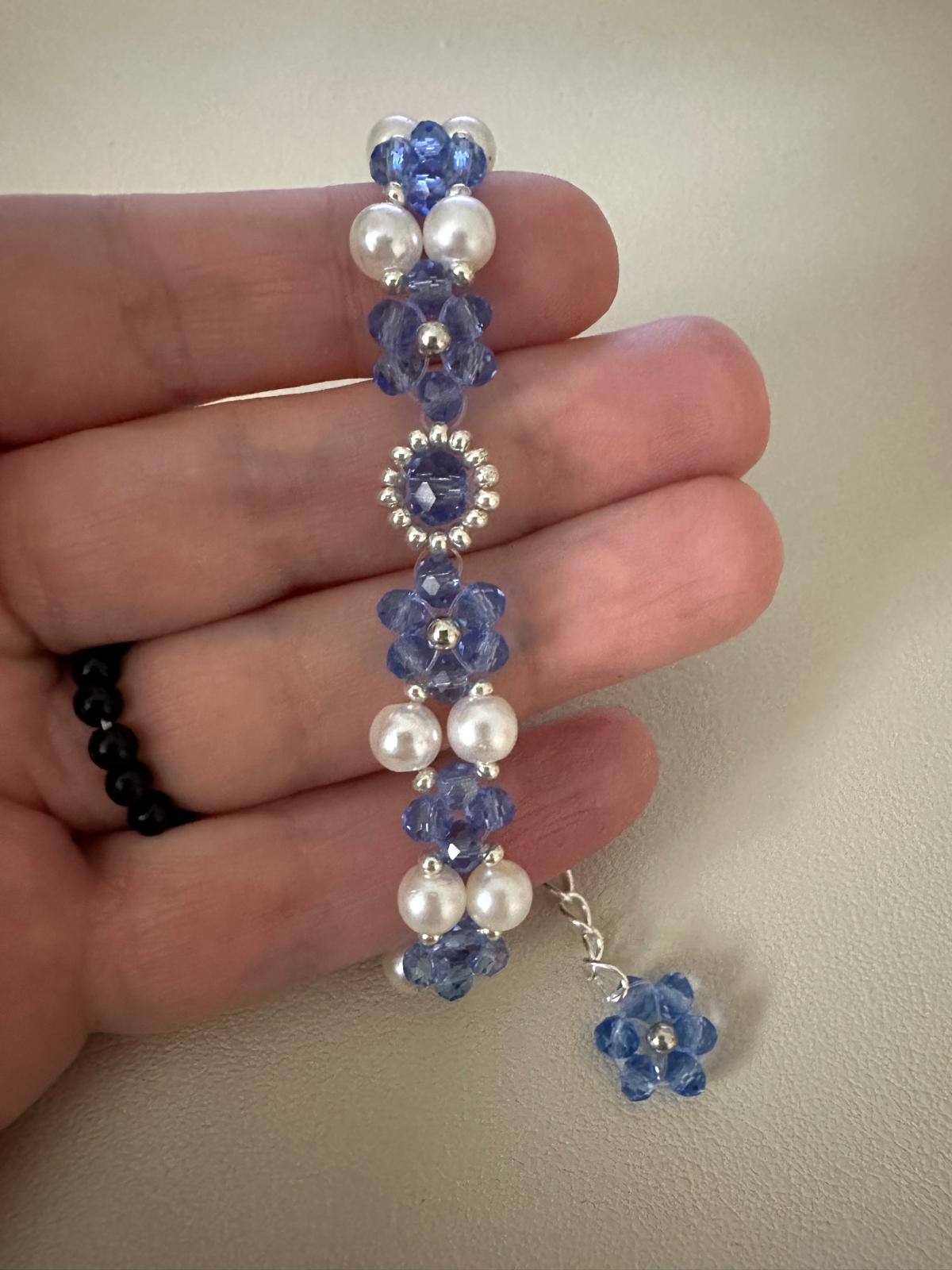 * Lovingly made with high-quality blue crystal glass beads (3 mm and 4 mm), high-quality ivory white faux pearls (6 mm), and silver beads (3 mm and 2 mm).